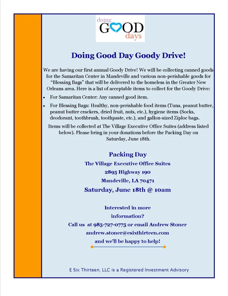 Doing Good Day Blessing Bag Drive (June 14, 2017)